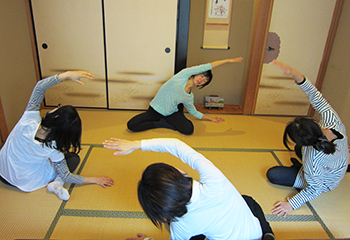 呼吸とともに丁寧に心と体を整え、お産の準備をします。ヨガが初めて方も安心の少人数制(定員3名)。60分間のヨガとティータイムです。